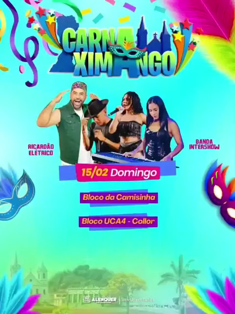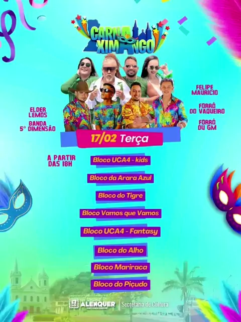 🎉 Hoje vai ter muita folia e alegria na ultima noite do CarnaXimango 2026! Dá uma conferida na programação e vem aproveitar cada momento dessa festa incrível! 🥳🎶