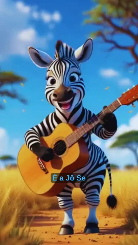 Zebrinha se divertindo muito com seu violão.
