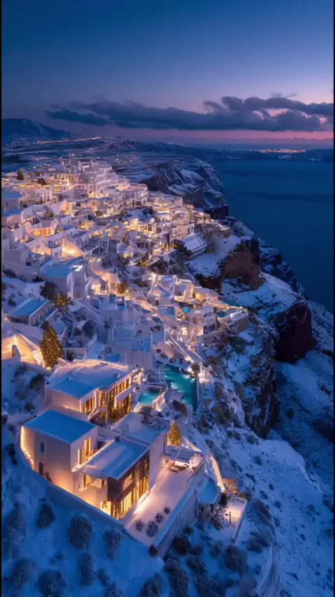 Satorini como você nunca viu antes💛🧡 😍Entre casinhas brancas e cúpulas azuis, o pôr do sol mais famoso do mundo revela uma beleza que parece de outro planeta 🌅💙. Um paraíso grego filmado de um ângulo único — prepare-se para se apaixonar por cada detalhe dessa ilha dos sonhos! 🇬🇷✨ #Santorini #Grécia #viagemdossonhos #turismo #KwaiVideo