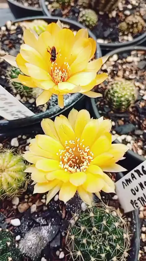 duas amarelinhas lindas , lobivia HB tailandesa. #meucultivo #jardimdeespinhos #minhacolecao #cactosfloridos #loucosporcactos