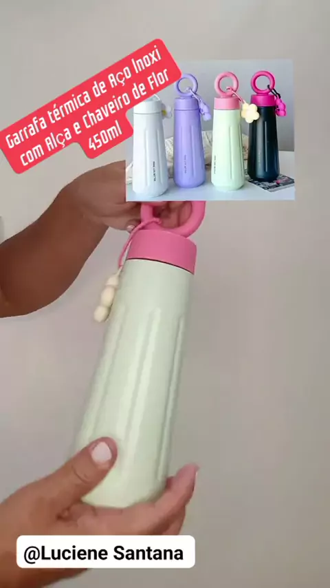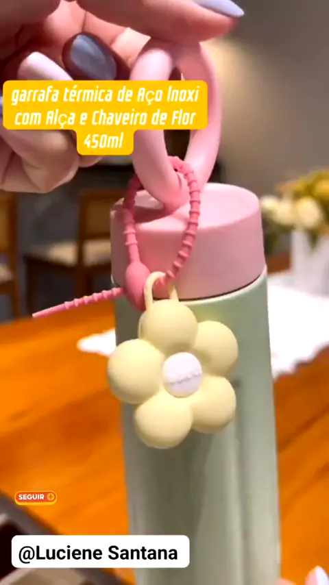 Garrafa térmica de Aço lnoxi com Alça e Chaveiro de Flor 450ml 011 #sejacriador #viraliza