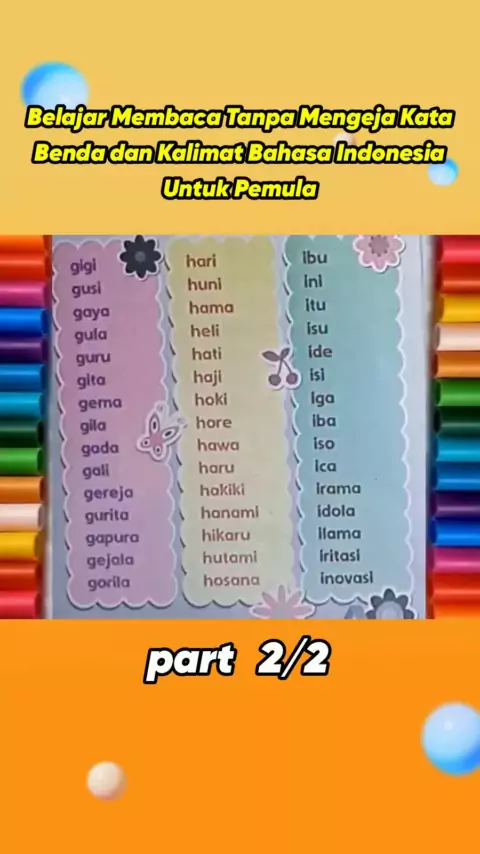 Belajar Membaca Tanpa Mengeja Kata Benda dan Kalimat Bahasa Indonesia Untuk Pemula