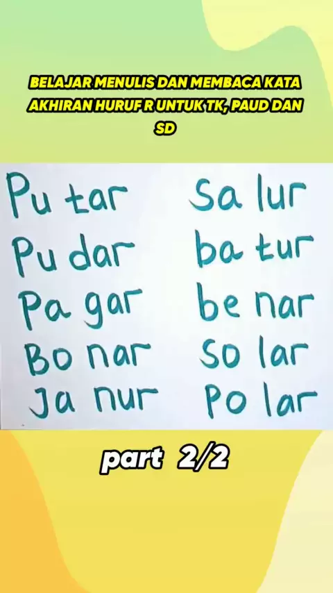 BELAJAR MENULIS DAN MEMBACA KATA AKHIRAN HURUF R UNTUK TK, PAUD DAN SD