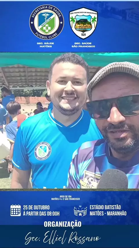 SECRETÁRIO DE SAÚDE DE MATÕES ELLIEL FALA SOBRE A VITÓRIA DIANTE DA EQUIPE DE SÃO FRANCISCO ... Os servidores da secretaria de saúde de Matões encima da equipe dos servidores da saúde de São Francisco pelo placar de 2x1. #futebol #saude #secreria #matoes #saofrancisco