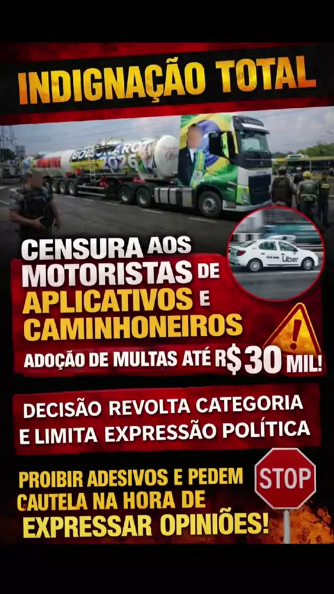CENSURA DISFARÇADA DE JUSTIÇA! 🚨 Motoristas e caminhoneiros proibidos de mostrar opinião política nos próprios veículos. Trabalhar pode, se expressar não? Isso é liberdade ou controle? ✊ IndignaçãoTotal #LiberdadeDeExpressão #Caminhoneiros #MotoristasDeApp #CensuraEleitoral #Brasil