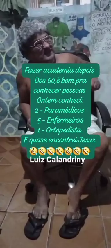 Sou LUIZ Calandrini tenho 63 anos,sou de Belem-Pa,sou bem humorado,nessa quarentena tive que fazer algo pra me distrair e deu nisso.kkkkkkkk, diversão para famílias Brasileira 🙏🙏👍👍❤️❤️.