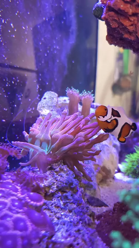 Aquário marinho, peixe palhaço e anemonas. #anemona #Supercopa2026 #nemo