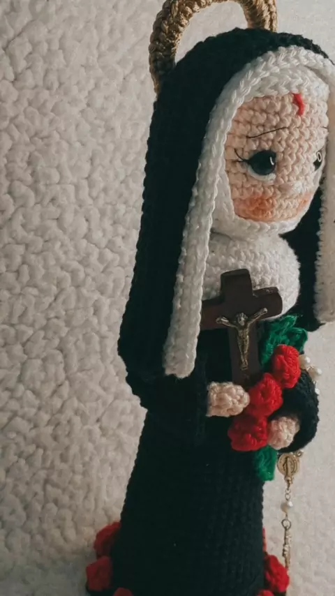 Santa Rita de Cássia 🌹 . . #santaritadecassia #croche #feitoamao #amigurumi #artesanato