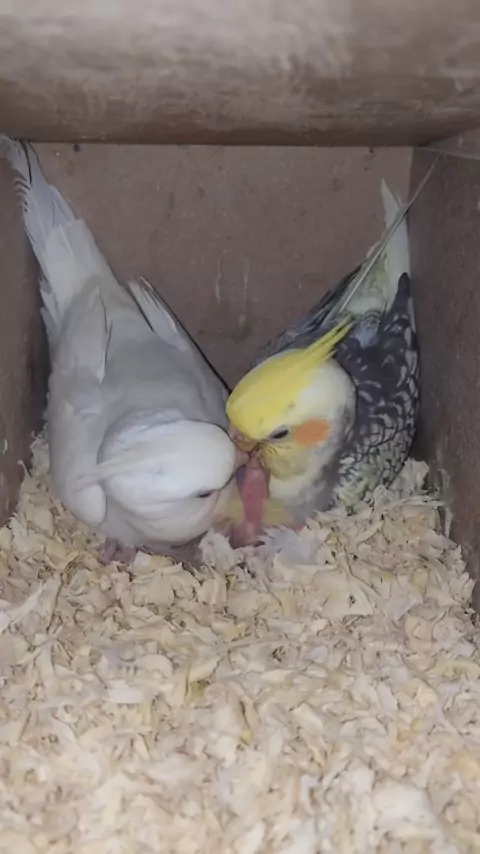 #calopisita #cockatiel #calopsitabrasil #BIRDS #passaros Casal de calopsita alimentando seu filhote de 1 dia de vida... Mãe CB Pai CA. Segue pra mais videos....