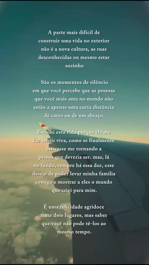 Construir uma vida fora do Brasil é o sonho de muita gente... Mas pouca gente fala sobre o outro lado disso. A distância da família. O silêncio nos dias difíceis. O peso de amar dois lugares e nunca ter os dois por perto. Esse é o lado invisível de morar fora — o que não aparece nas fotos bonitas, mas vive aqui dentro. Se esse texto falou com você, comenta um "eu entendo" e me acompanha por aqui. Eu mostro a vida real de quem recomeçou do zero na Europa. #morarfora #brasileiroseuropa #barcelona