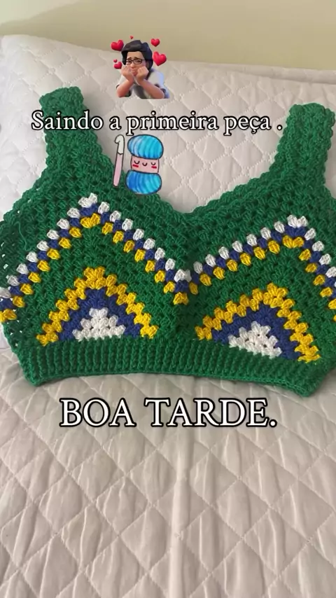 Cropped de crochê Copa do Mundo, amei fazer em um dia. Aula do professor Neddy Ghusmam.