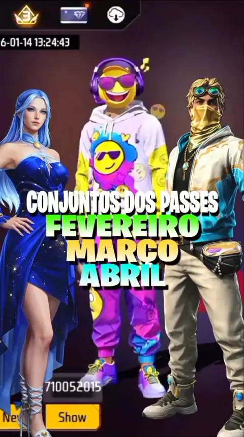 Conjuntos dos próximos passes booyah de Fevereiro, Março e Abril Free Fire! #FreeFire #foryou