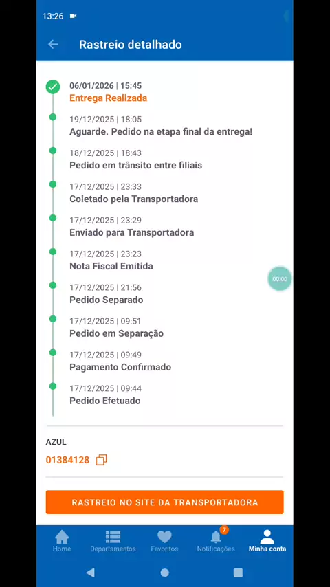 “Azul Cargo Express: entrega feita, mas 20 dias de espera.”