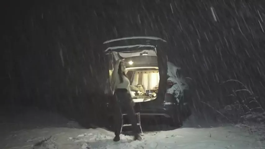 Luz neve auto-condução bicicleta ao ar livre camping, vida de acampamento requintado... # outdoor camping # imersivo camping