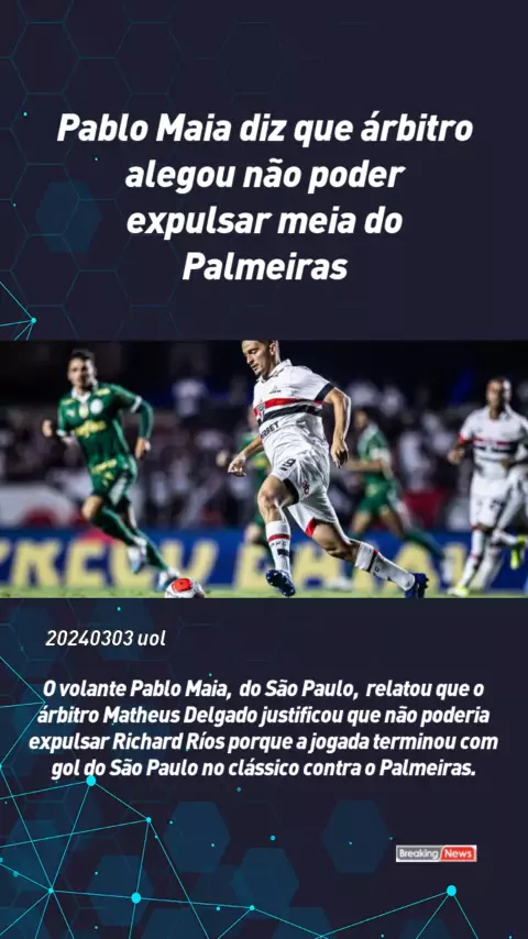 Pablo Maia diz que árbitro alegou não poder expulsar meia do Palmeiras