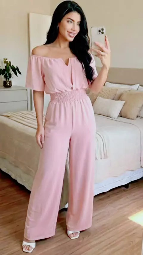 Macacão Longo Moda Feminina Pantalona Com Bojo Acinturado