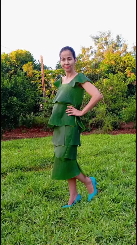 Meu vestido todo na folha de bananeira. O que você achou? #vestidodefolhas #vestidodefolhasdebananeira #modasustentavel #madacarlos #viralizar