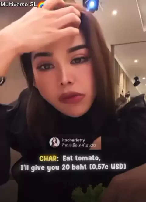 Engfa foi desafiada pela Charlotte a comer tomate😂😂😂😂 tadinha da Engfa, mas ganhou 20 baht😂😂😂 #engfawaraha #charlotteaustin #englot #showmelove #gl
