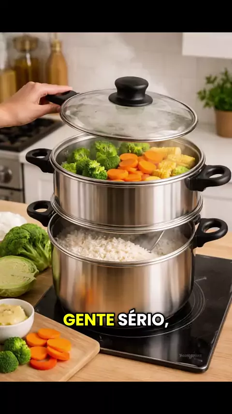 Panela Cozivapor 2 em 1 com tampa de vidro prateado. Clique no carrinho e garanta já a sua! #shopkwai #viral #panelacozivapor #cozinha