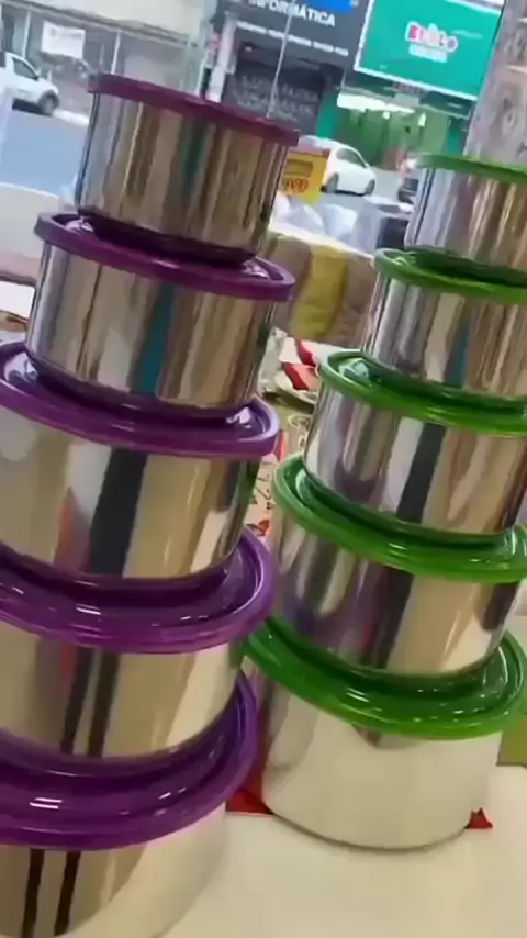 Jogo 5 Potes tigelas em alumínio com tampa redondo. Clique no carrinho e garanta já o seu. #kwaishop #potesemaluminiocomtampa #tigela