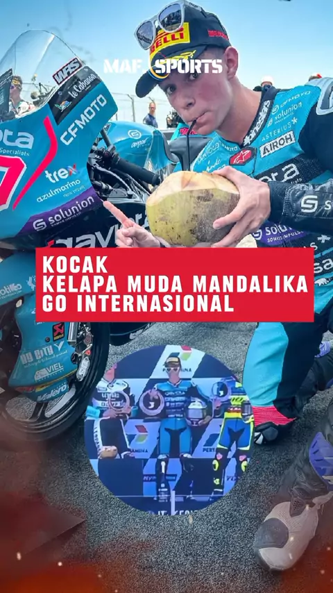 kocak, juara moto3 mandalika, David Alonso bawak kelapa muda ke podium. #moto3 #sirkuitmandalika #trendsports #snacksports #motogp