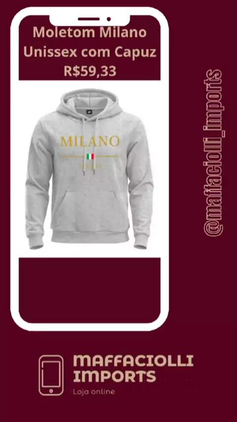 Moletom Milano Unissex com Capuz Preço: R$59,33 ✔ 100% algodão - maciez e conforto garantidos ✔ Estampa premium - tecnologia Power Film (alta durabilidade) ✔ Tamanhos do P ao GG - medidas precisas para melhor caimento ✔ Modelo unissex - estilo urbano e versátil Cuidados especiais: - Lavar do avesso em água fria - Não usar alvejante - Secar à sombra Link na bio do meu Instagram @maffaciolli_imports #maffaciolli_imports #maffaciolli #Shopee #VNVideoEditor #ModaUnissex