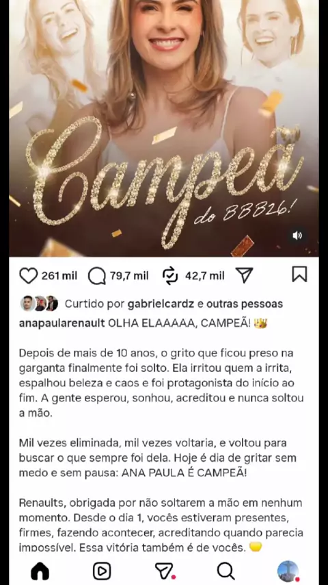 Viva a vida honestamente e alegremente sem se se importar com a opinião alheia. Permita-se ser mal vista e mal visto! #AnaPaulaCampeãBBB26!