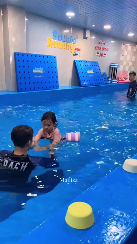 MasyaAllah gak Sia sia mama papa les in kk berenang biar ga takut sm air 😆 thanksss coach lutfy, thanks @StudioRenang.com sentul city 🥰 #lesrenangsentul #lesrenang #lesberenang #sentulcity #studiorenangsentul