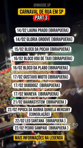 GLORIA GROOVE COMANDA BLOCO GRATUITO NO CARNAVAL DE SÃO PAULO 🎤🔥 Vai ter Gloria Groove sim — e de graça — no Carnaval de SP. Ela é a headliner do Bloco do TikTok + Agrada Gregos, um dos maiores megablocos da cidade, que arrasta mais de 1 milhão de pessoas todo ano. 🗓️ Sábado, 14 de fevereiro ⏰ Concentração a partir das 13h | Desfile das 14h às 18h 📍 Parque Ibirapuera (entre o Obelisco e o Monumento às Bandeiras) 🎶 Além da Gloria Groove, ainda rola: Gretchen, Traemme e muita música pop, f