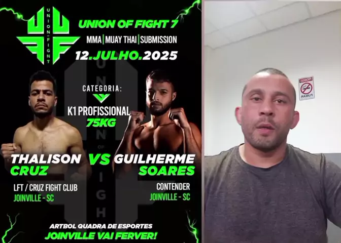 Joinville vai tremer com a 7° edição do UNION OF FIGHT e a luta mais esperadas da noite é entre Thalisson Cruz x Guilherme Soares. https://www.instagram.com/gm_gois/profilecard/?igsh=MWp0cDFrMGd5NGkxMg== #kwai #luta #mma