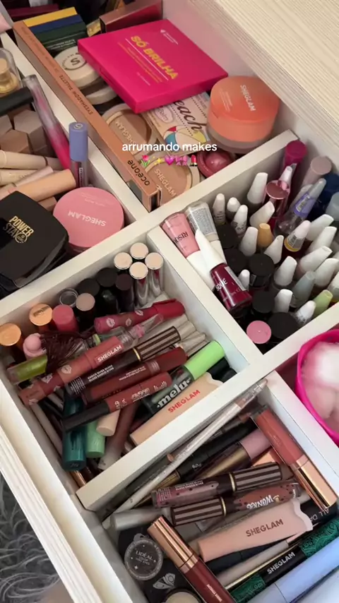 Vem arrumar comigo minha gaveta de makes 🤩🌷🎀💗✨ #viraliza #limpeza #arrumandopenteadeira #limpandomaquiagem #maquiagem