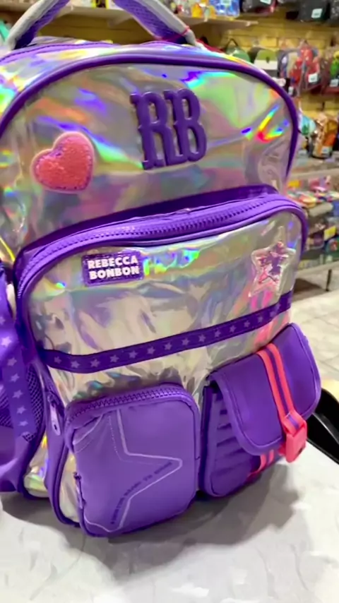 🛍️ Mochila de Costas Rebecca Bonbon Holográfica Escolar Infantil (50112) 🆔 e 🔗 nos comentários #Vem2026NoKwai #voltaasaulas #mochila #Rebecca #promo