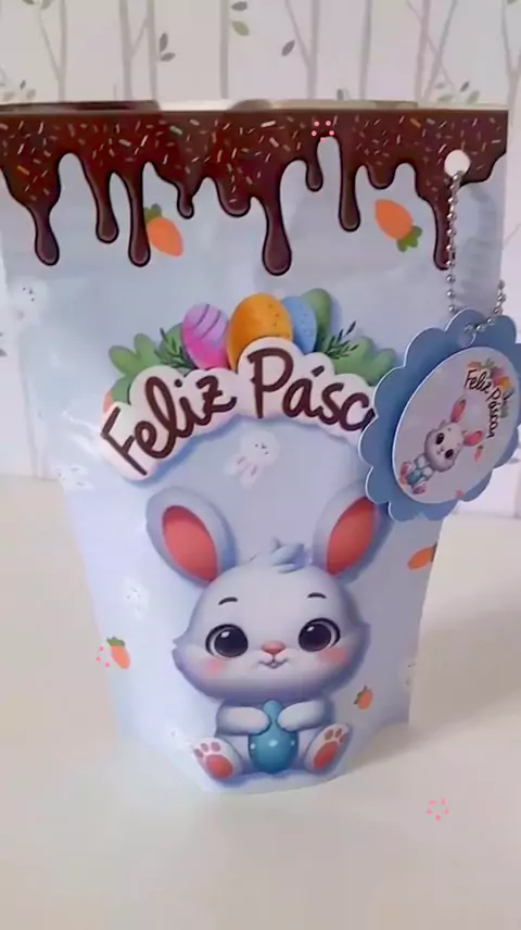 #kwai 🛍️ Kit 10 saquinhos metalizadospersonalizados ziplock de Páscoa (com corrente e tag). Lembrancinha 🆔 e 🔗 nos comentários #pascoa #lembrancinhas #docinhos