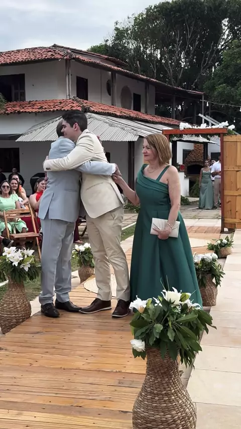 ✨ A entrada do noivo com seus pais — um dos momentos mais fortes, simbólicos e cheios de significado da cerimônia de Gabriela & Guilherme ✨ Quando Guilherme entrou, não foi apenas uma caminhada até o altar… foi a história dele se apresentando diante de todos. O início de um novo capítulo, mas também a lembrança viva de tudo que o trouxe até ali: a fé, a família e o propósito que moldou sua jornada.