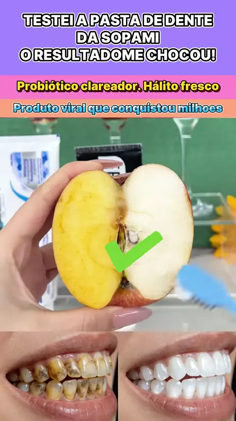 🦷💖 Cuide de seus dentes com SOPAMI! Fórmula delicada e eficaz para um sorriso mais bonito e saudável! 👏💫 #CuidadoComOsDentes #SOPAMI #SorrisoBranco #HálitoFresco -ht