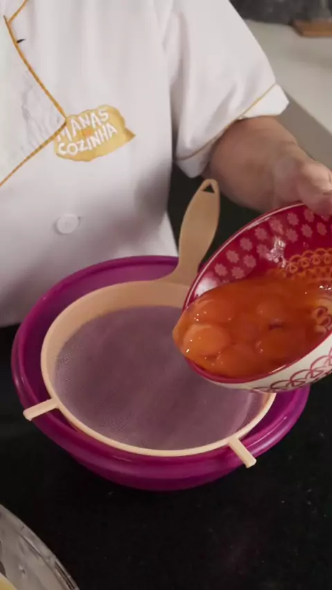 🍮 Pudim Inspirado no Coco Bambu Ingredientes * 8 gemas peneiradas (sem a pelinha, para não dar cheiro de ovo) * 200 ml de leite * 1 colher de café de essência de baunilha (boa qualidade) * 2 latas de leite condensado Modo de Preparo 1. **Peneire as gemas** sem raspar, só deixando escorrer para eliminar a película. 2. Em uma tigela, misture gemas peneiradas, leite, essência de baunilha e leite condensado. 👉 Só com fuê, nada de liquidificador. 3. Despeje em forma caramelizada. 4. Asse em