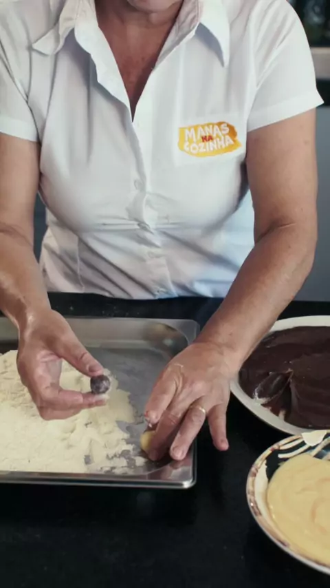 🍬 Camafeu • Ingredientes Brigadeiro de Nozes 1 lata de leite condensado 200 g de creme de leite 3 colheres (sopa) de leite em pó 1 colher (sopa) de manteiga 200 g de nozes trituradas Cobertura 500 g de açúcar de confeiteiro 80 ml de leite Finalização Metades de nozes para decorar • Modo de Preparo Em uma panela, coloque o leite condensado, o creme de leite, o leite em pó, a manteiga e as nozes trituradas. Leve ao fogo baixo, mexendo até obter ponto de brigadeiro mole (soltando do fund