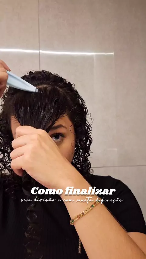 Finalizando a frente do cabelo sem divisão 🤌✨️ #Cachos #finalizacao #fitagem #curly #curlyhair