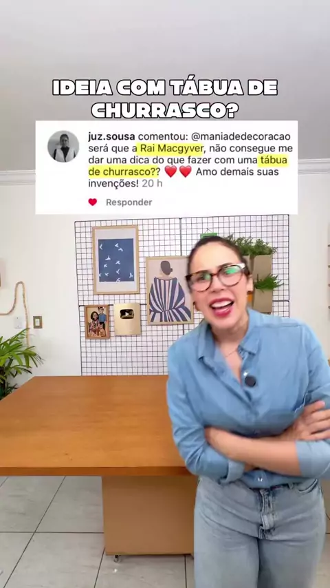 O que vocês não me pedem sorrindo que eu não faço ficando doida? 😂 Com essa história de MacGyver, cês acham que eu consigo inventar infinitamente - e eu juro que vou me esforçar! Dessa vez, foi uma mesa com tábuas de churrasco SEM USAR PARAFUSO! E agora, gente? Que objeto eu uso nas próximas? Me conta nos comentários! 🌸⤵️
