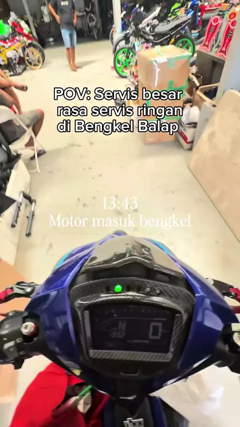 POV: Bengkel balap di akhir tahun👇 Ngomong-ngomong alasan mau servis besar emang dari suara mesin yang mulai kasar. Kirain kruk as kena karena udah nyentuh 10.000km dari awal @mxnarogong jadi, eh ternyata untung Oneway belum copot🗿 #roadrace #bengkel #balapmotor #bengkelmotor #mxking