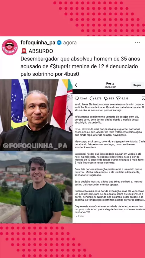 O desembargador Magid Nauef Láuar, relator do caso que absolveu um homem de 35 anos acusado de €stupr4r uma menina de 12, é investigado pelo Conselho Nacional de Justiça (CNJ) por denúncia de 4bus0 $€xu4l. A informação foi confirmada pelo corregedor nacional de Justiça, ministro Mauro Campbell, nesta segunda-feira (24). Segundo o corregedor, o CNJ vai ouvir pelo menos duas pessoas que afirmam ter sido vítimas do magistrado. As denúncias vieram à tona após a decisão da 9ª Câmara Criminal do Tri...