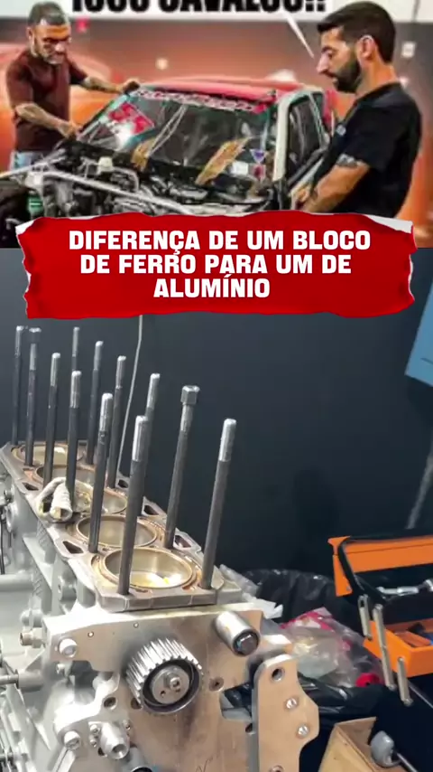 Olha a diferença de um bloco de ferro para um de alumínio! #carros#motor#bloco#ferro#aluminio