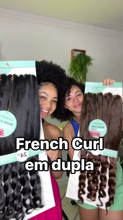 French Curl em dupla com minha irmã ❤️ 3 dias de luta, mais valeu a pena 😂 Quem gostou? Marque sua amiga e irmã pra fazer também. O cabelo você encontra no meu site-voudetrancas.com.br Foi usado 1 pacote em cada Cor 1 e cor 8 #frenchcurl #Tranças #boho