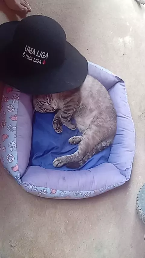 #dumho deitado na caminha dele e ainda com o chapéu de natanzinho