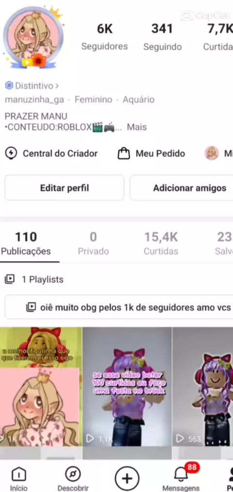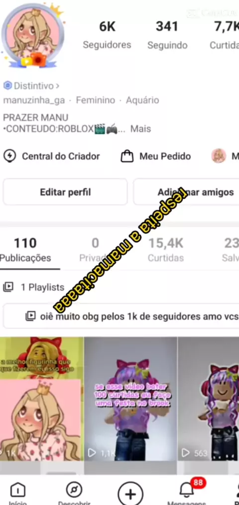 PRAZER MANU •CONTEUDO:ROBLOX🎬🎮 •MEU NICK: MANUZINHAHUFOFII • META 13K DE SEGUIDORES BJS :)