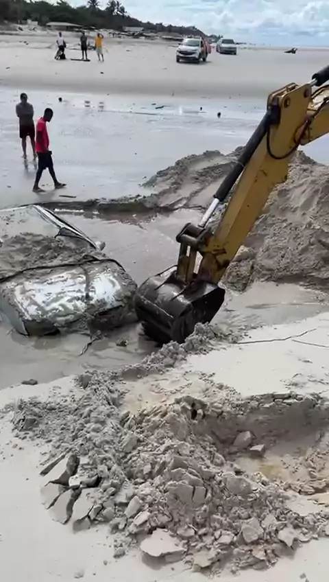 Carro é desenterrado em praia da Grande Ilha de São Luís