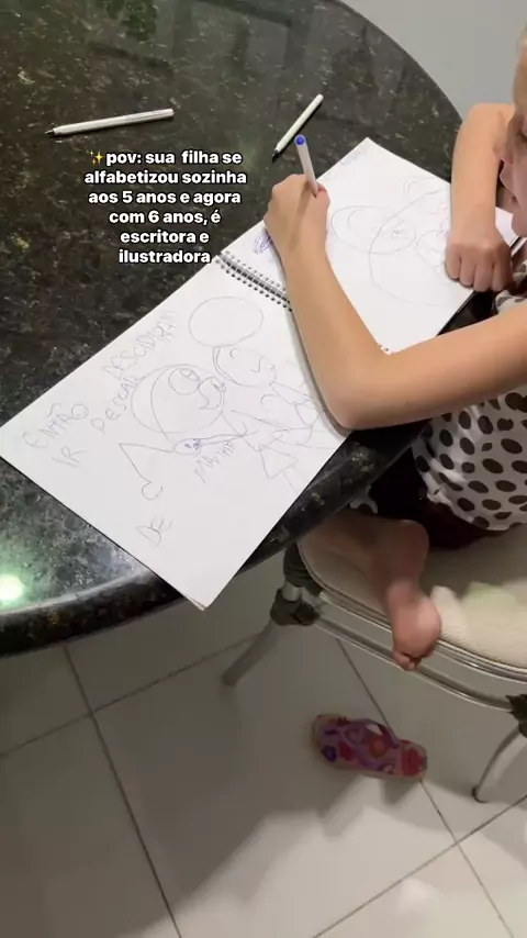 sua filha se alfabetizou sozinha aos 5 anos e aos 6 anos, é escritora e ilustradora. ♥️