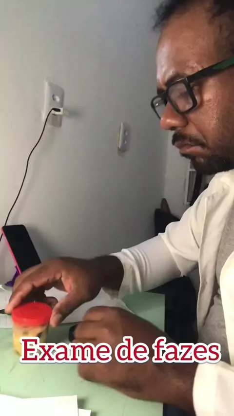 Médico examinado a fezes