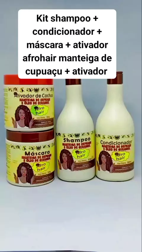 Kit shampoo + cond + masc + ativador afrohair manteiga de cupuaçu + ativador de cachos #kitshampoo #cond #masc #ativadordecachos