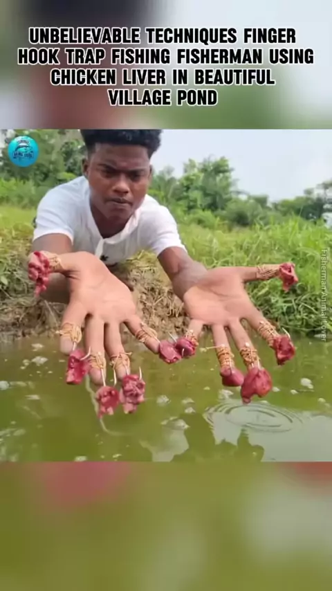 Técnicas inacreditáveis pescador de armadilha de gancho de dedo usando fígado de galinha na bela lagoa da aldeia # trap # fish _ video # fish # fishing # fish _ videos # # video # pagе # Р < unk > viral # fishingtrucks # viralvideo # viral # fishing _ video #